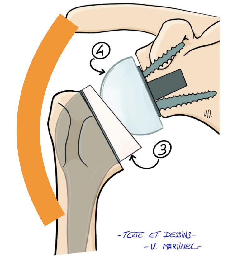 La coiffe des rotateurs étant détériorés, l'action du muscle deltoïde est privilégier pour animer l'épaule. Pour ce faire: les surface articulaire sont inversées: